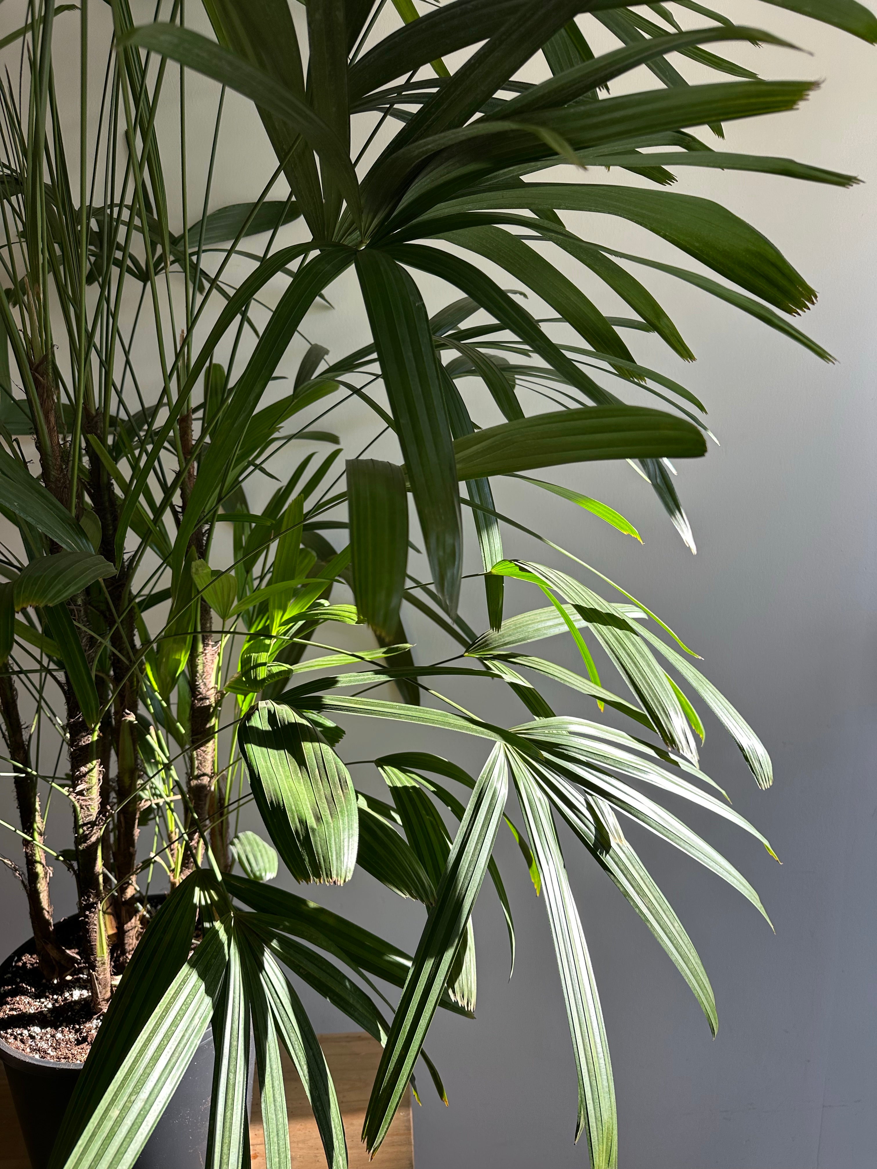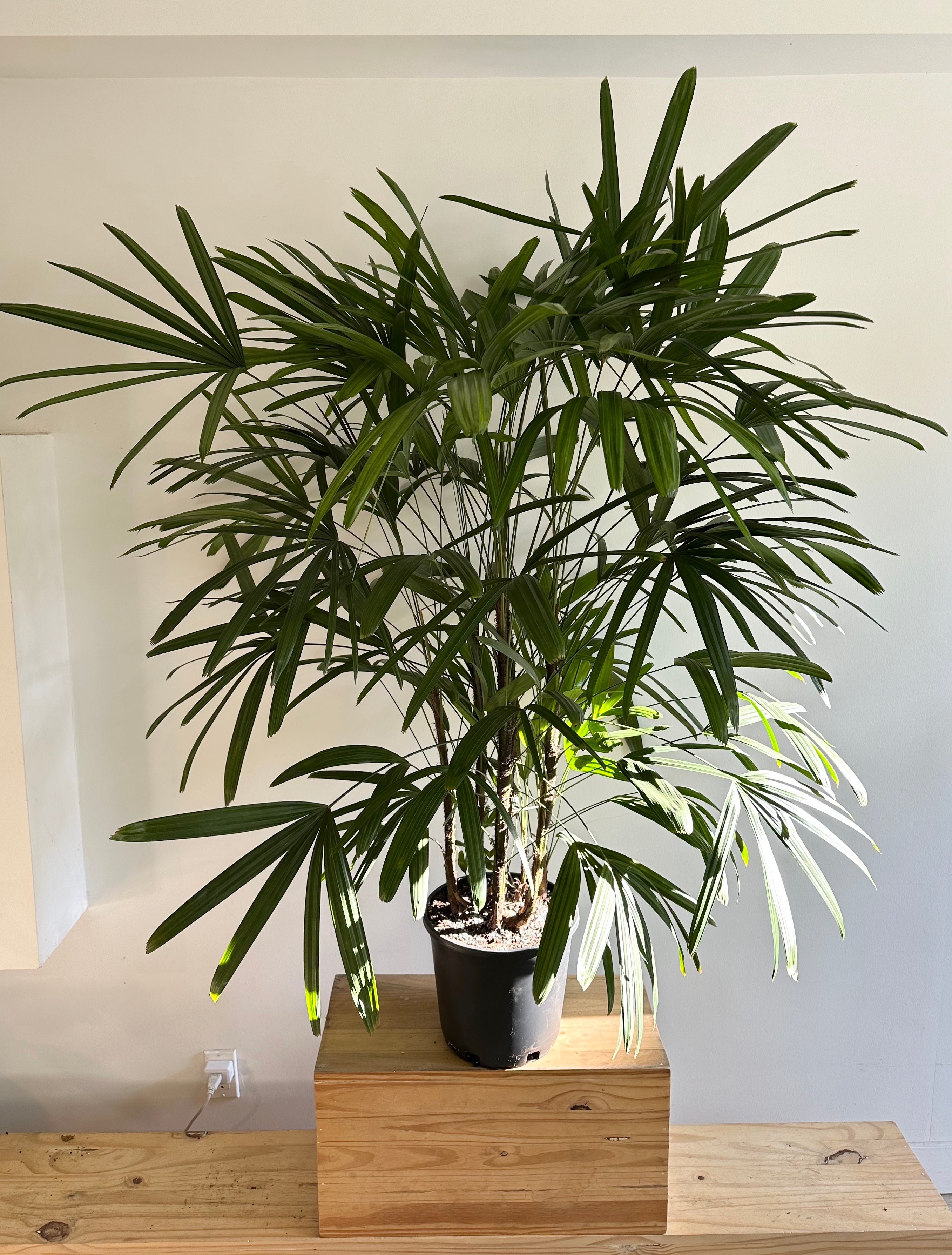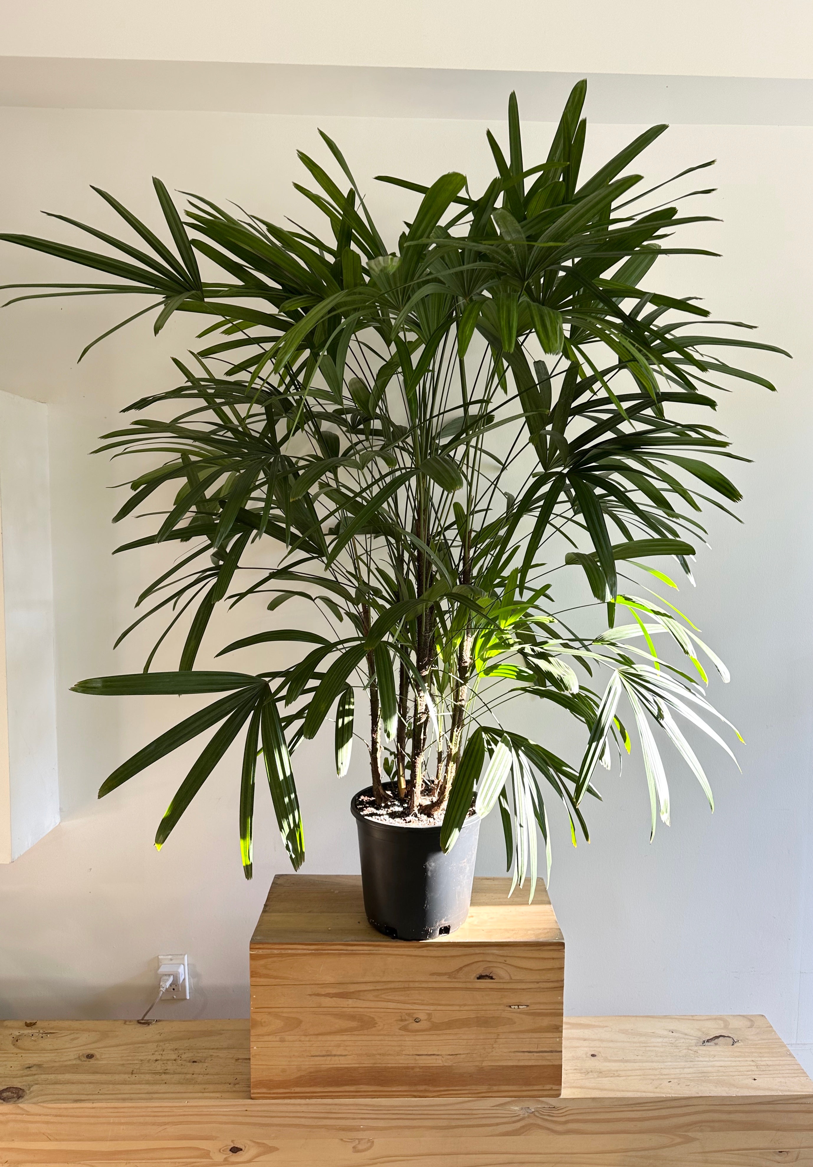 This easy to grow plant is full of tropical vibes and can reach heights of 10’ plus. It’s fan shaped leaves grow on sturdy stocks and are deep green in tone. This plant is non toxic, making it child and pet friendly.