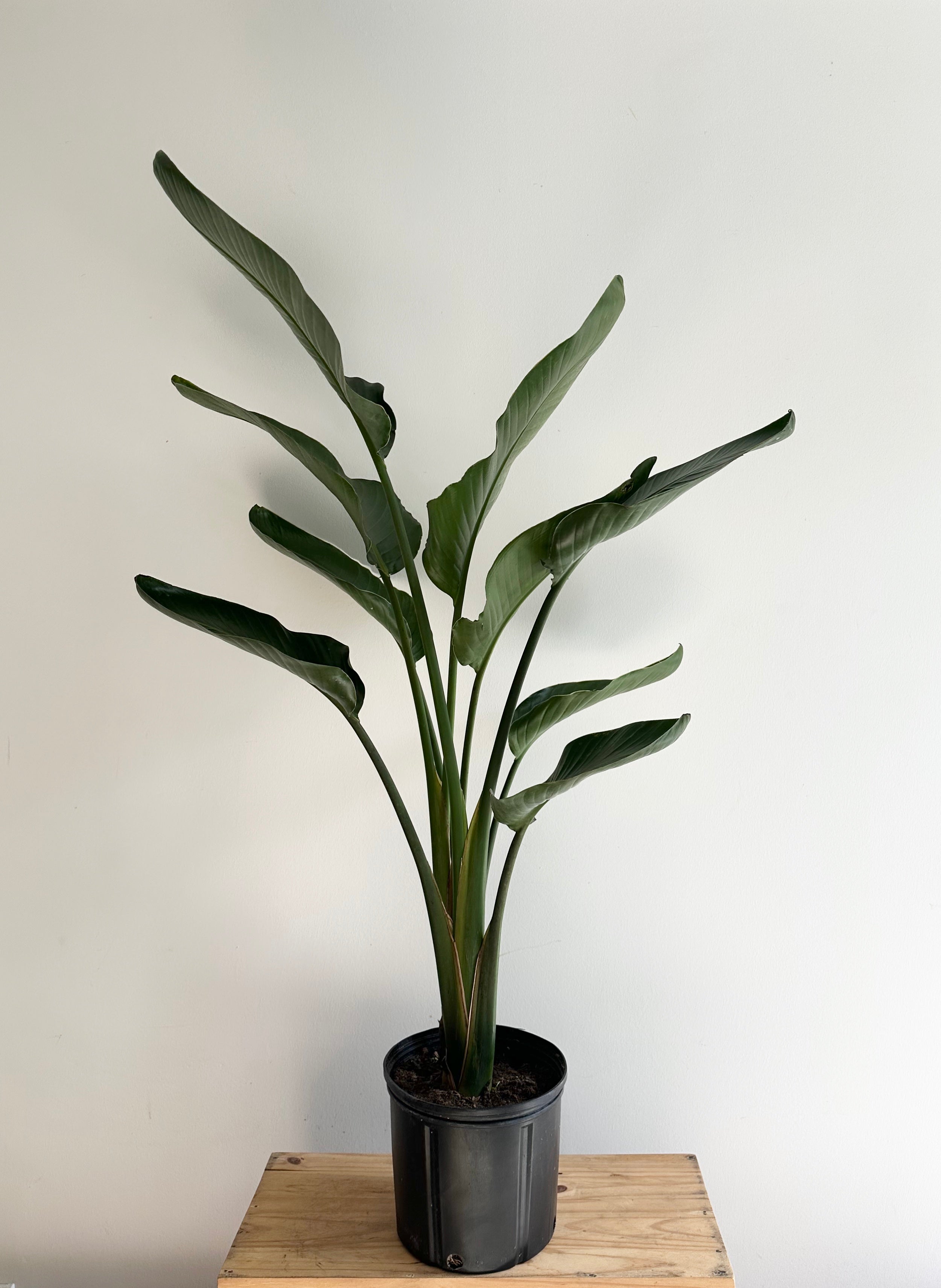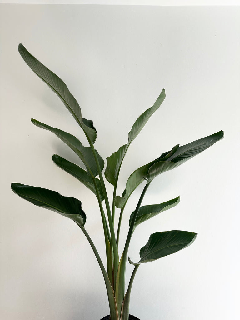 Strelitzia nicolai, commonly known as Bird of Paradise “White”,  is known for its large paddle shaped leaves. These plants are relatively fast growers and can reach heights of 10’ plus, even indoors. Bird of Paradise is a great plant for novices and plant enthusiasts alike.